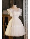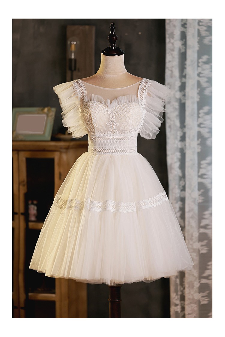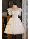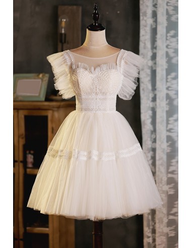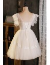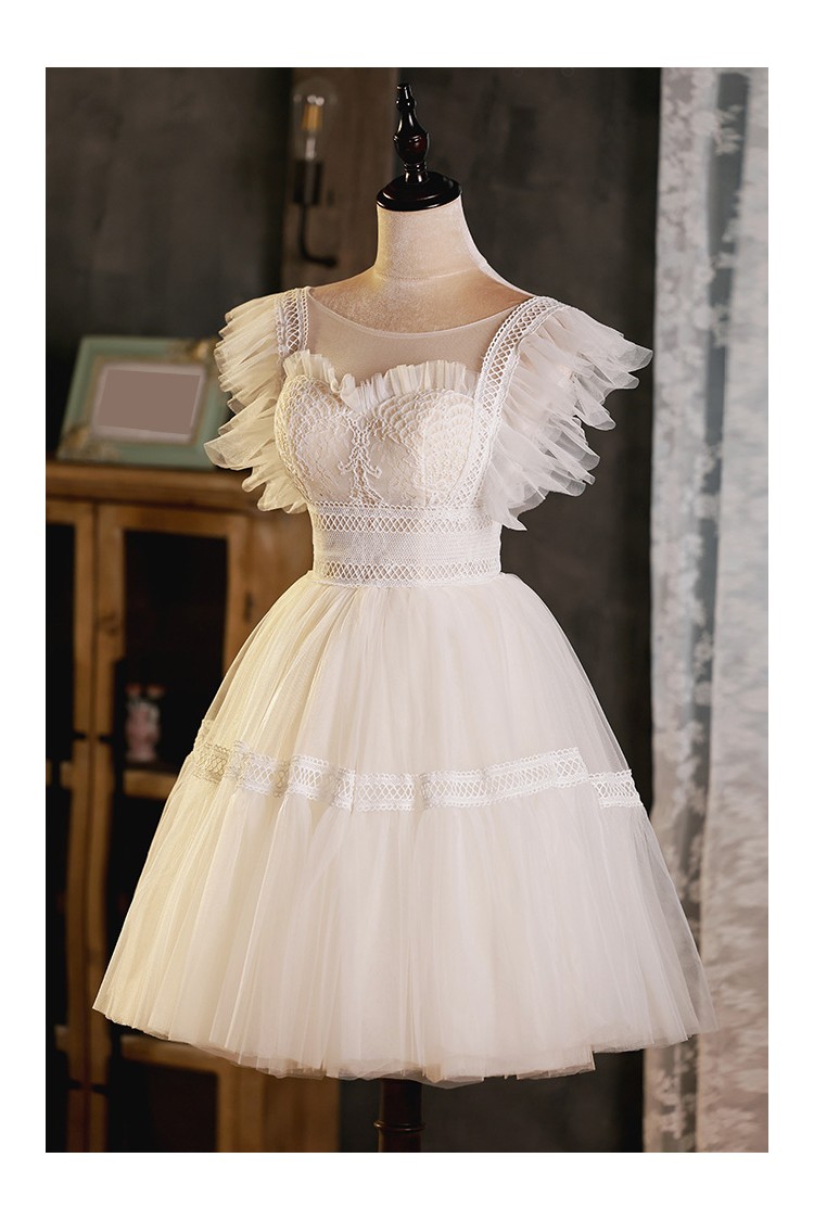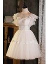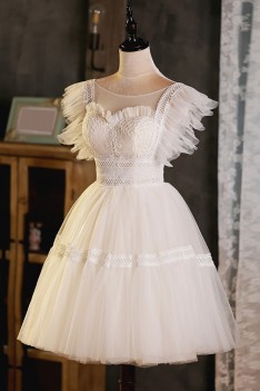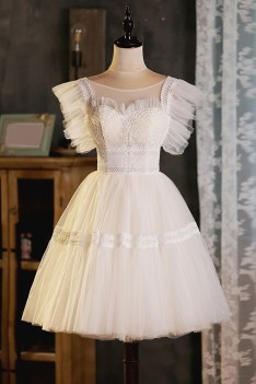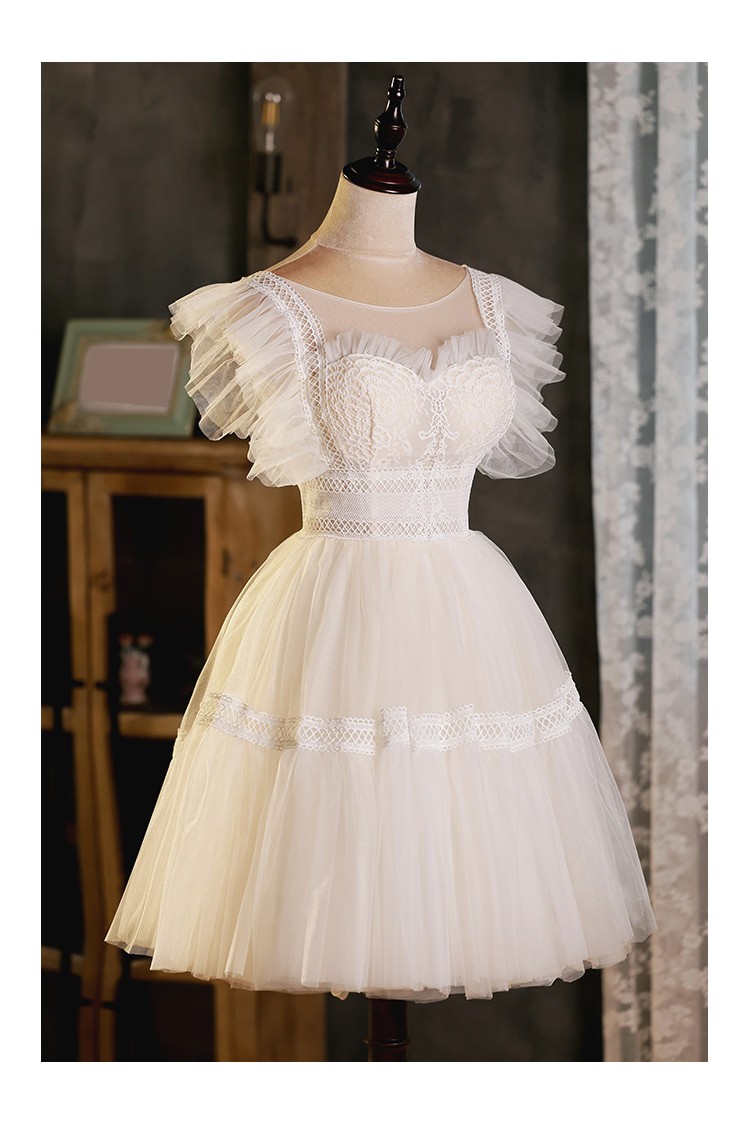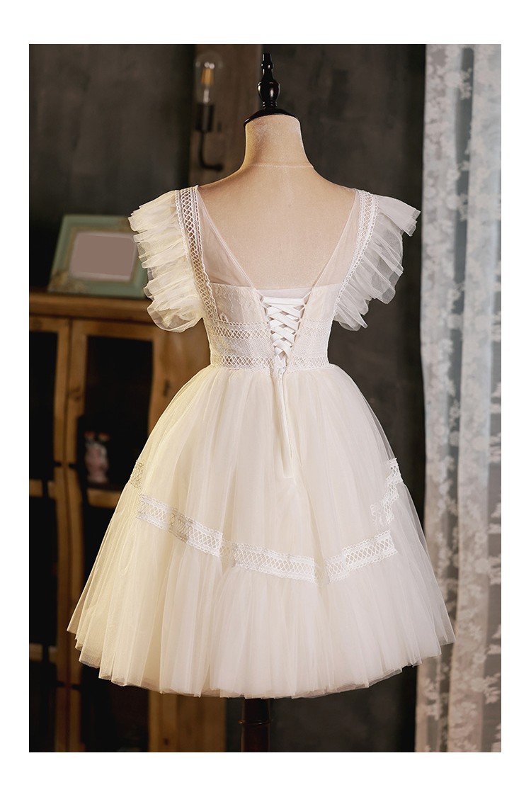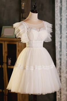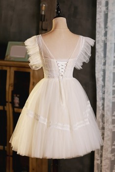 Light Champagne Tulle Short Homecoming Dress with Delicate Lace Overlay