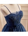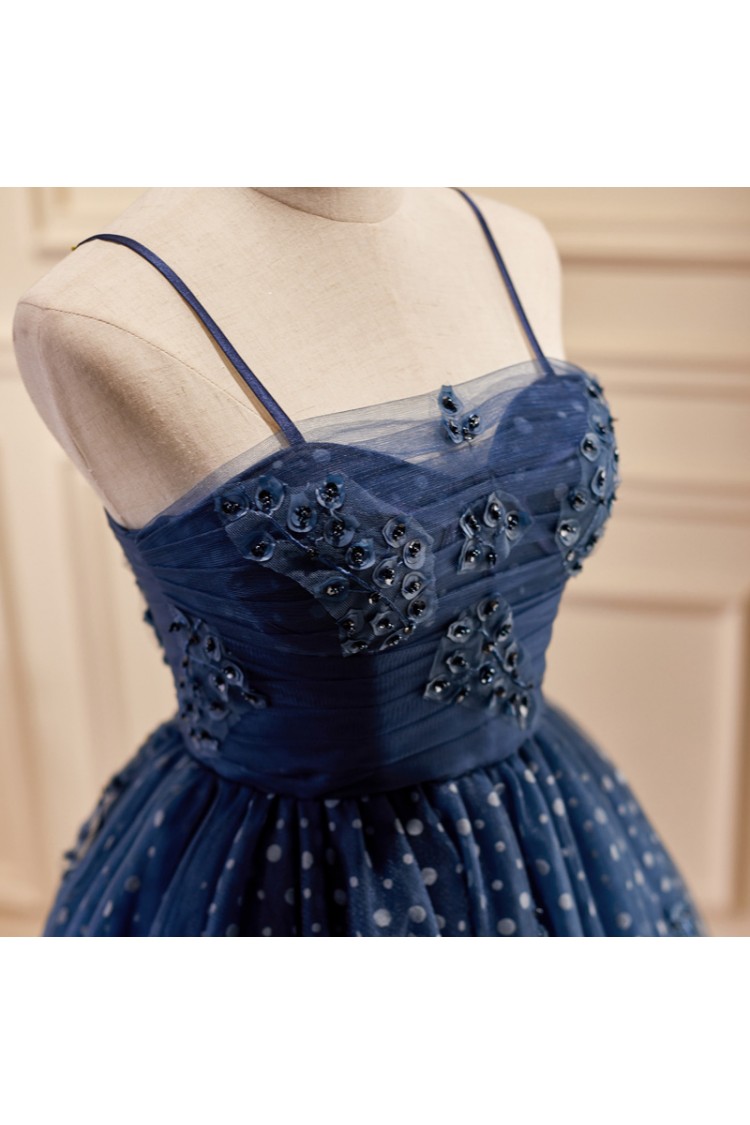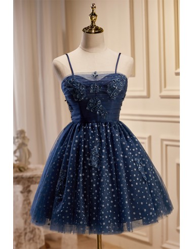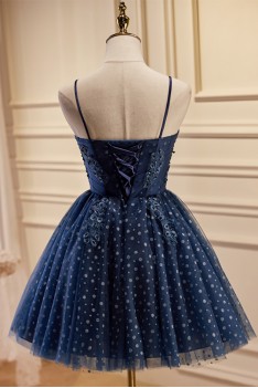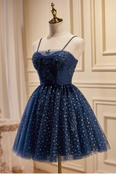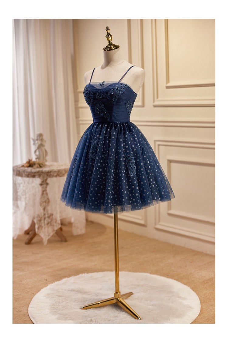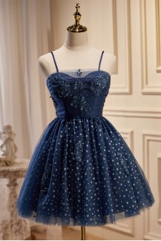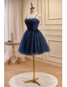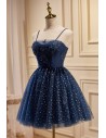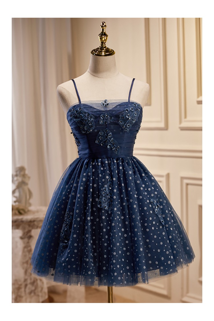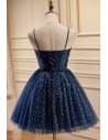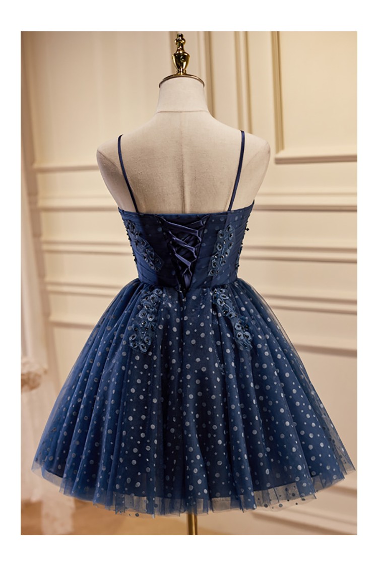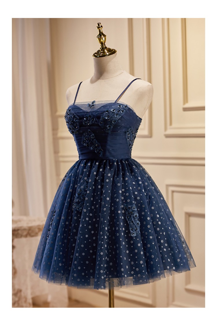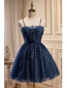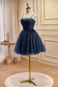 Lovely Navy Blue Polka-Dot Short Homecoming Dress with Straps