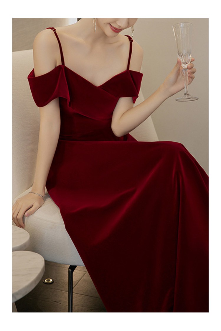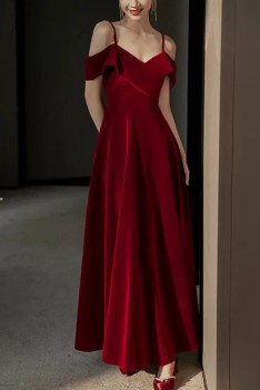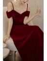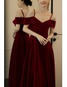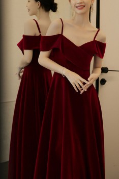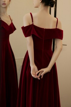 Slim Burgundy Long Velvet Party Dress Formal