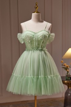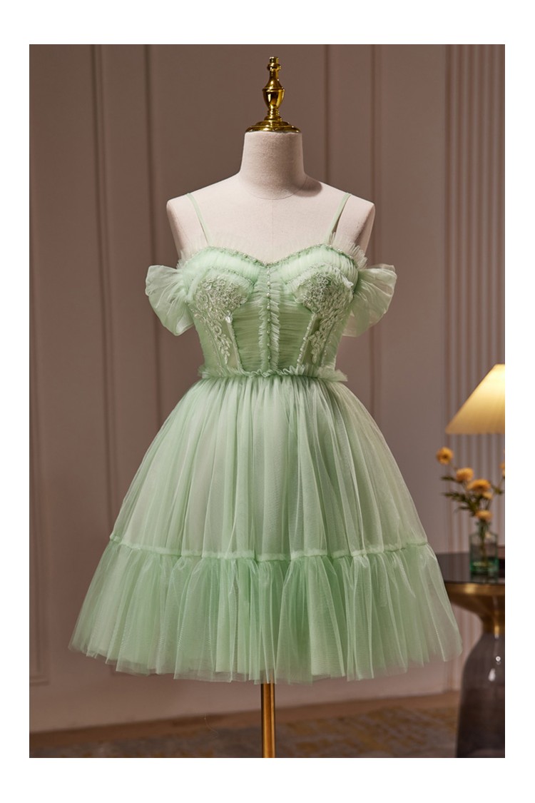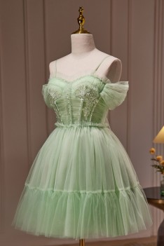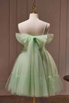 Sweet Back-Bow Green Tulle Short Homecoming Prom Dress
