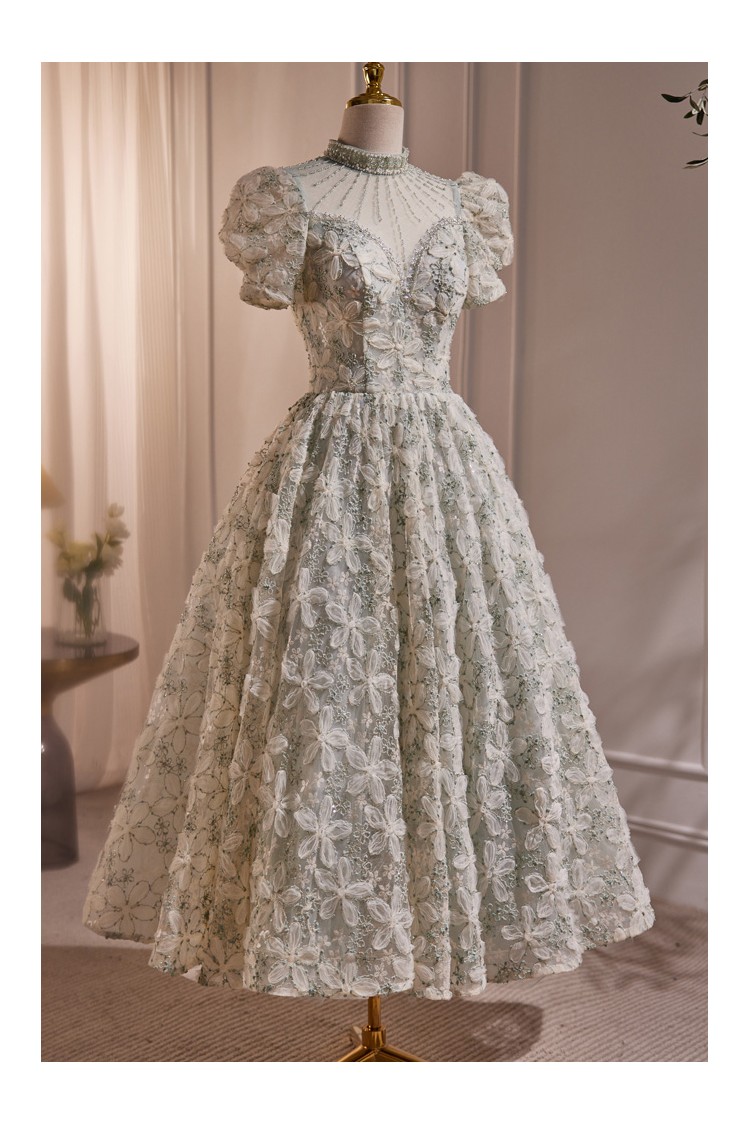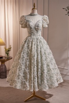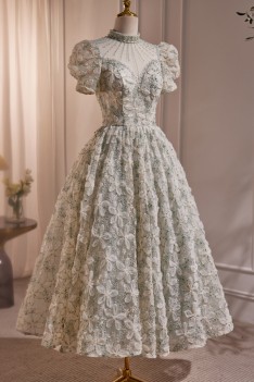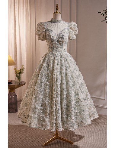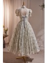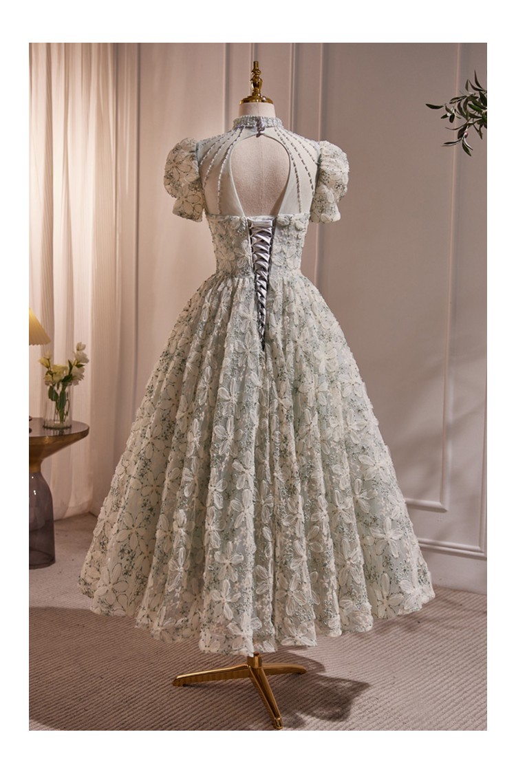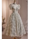 Unique Short-Sleeve Sequined Sweetheart Mid-Length Prom Dress – Floral Magic
